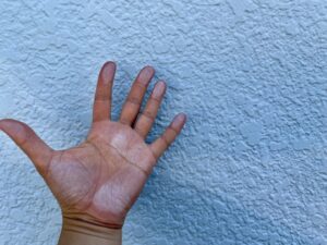 壁を触ったときに手に白い粉がつく。